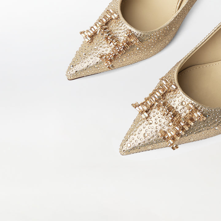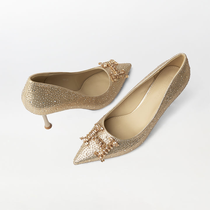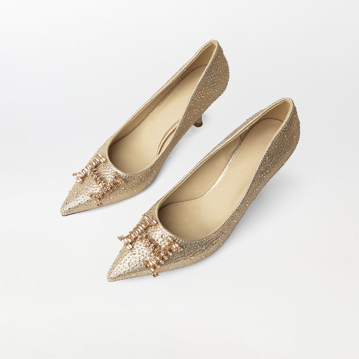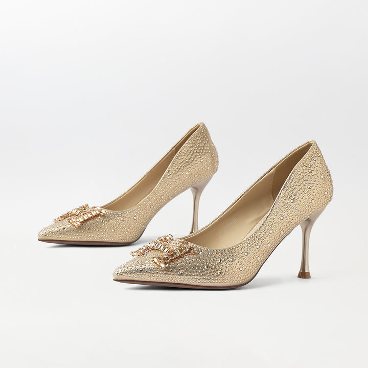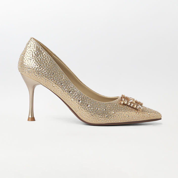 Stones Embellished Court Shoes Gold - (CH230)
