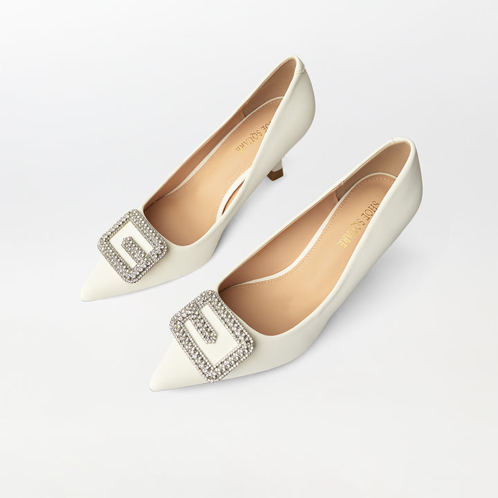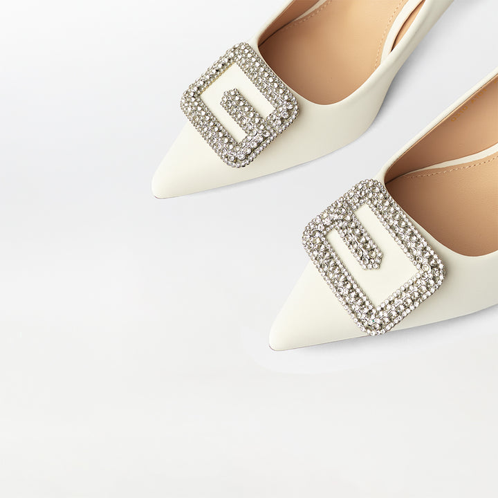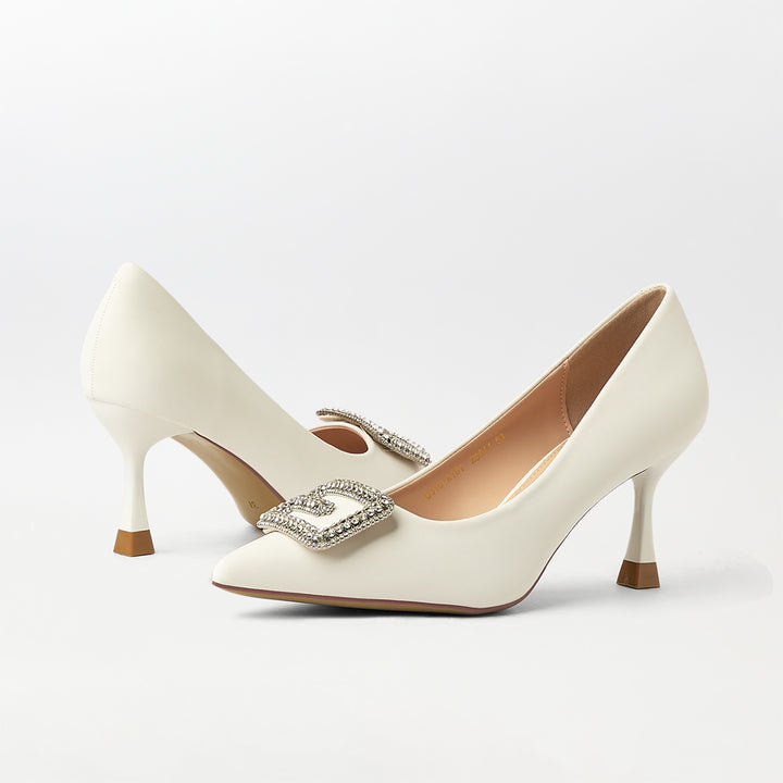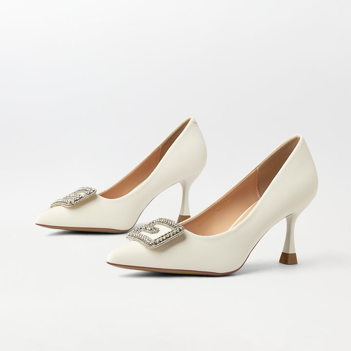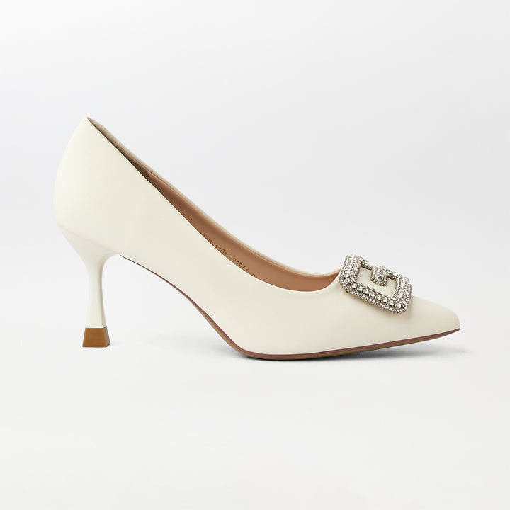 Buckle Embellished Court Shoes White - (CH237)