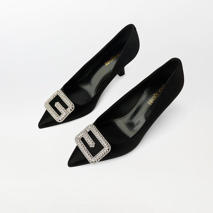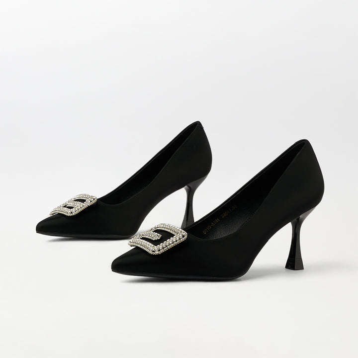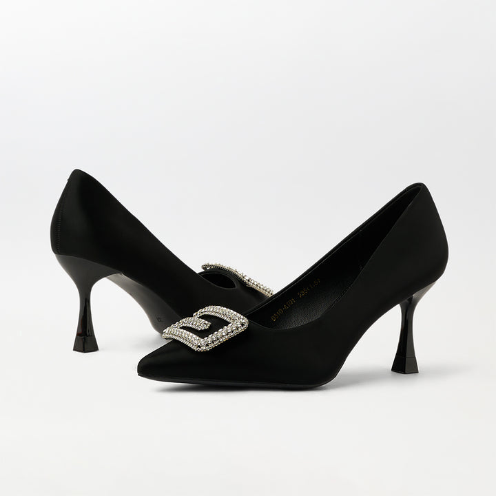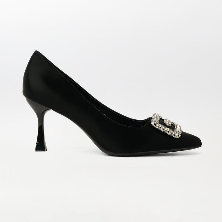 Buckle Embellished Court Shoes Black - (CH238)