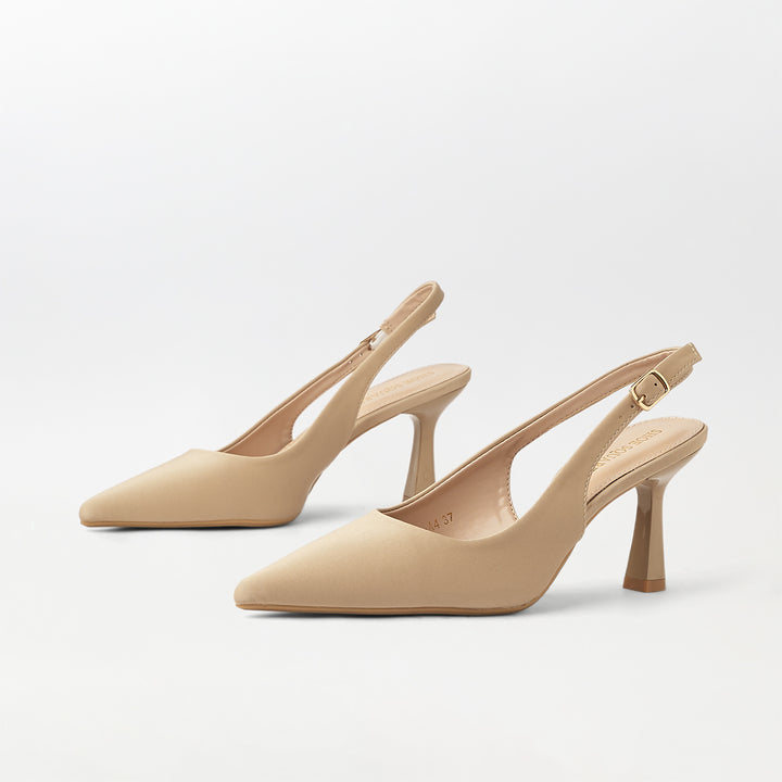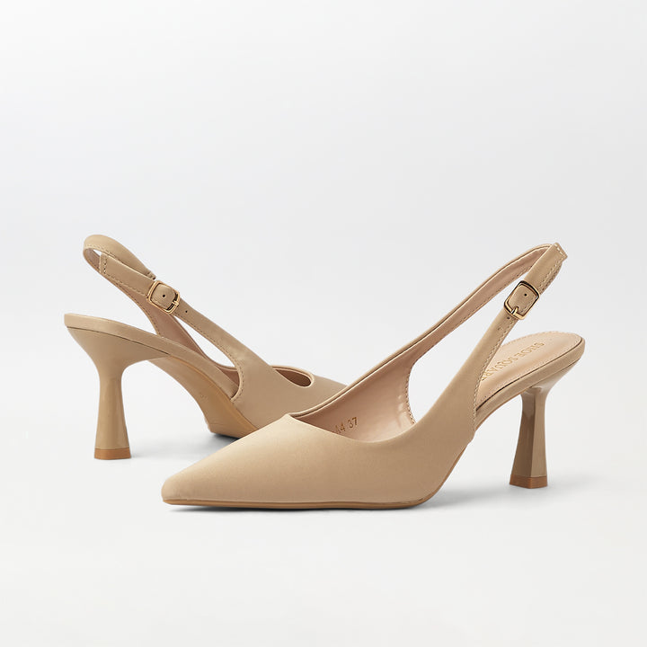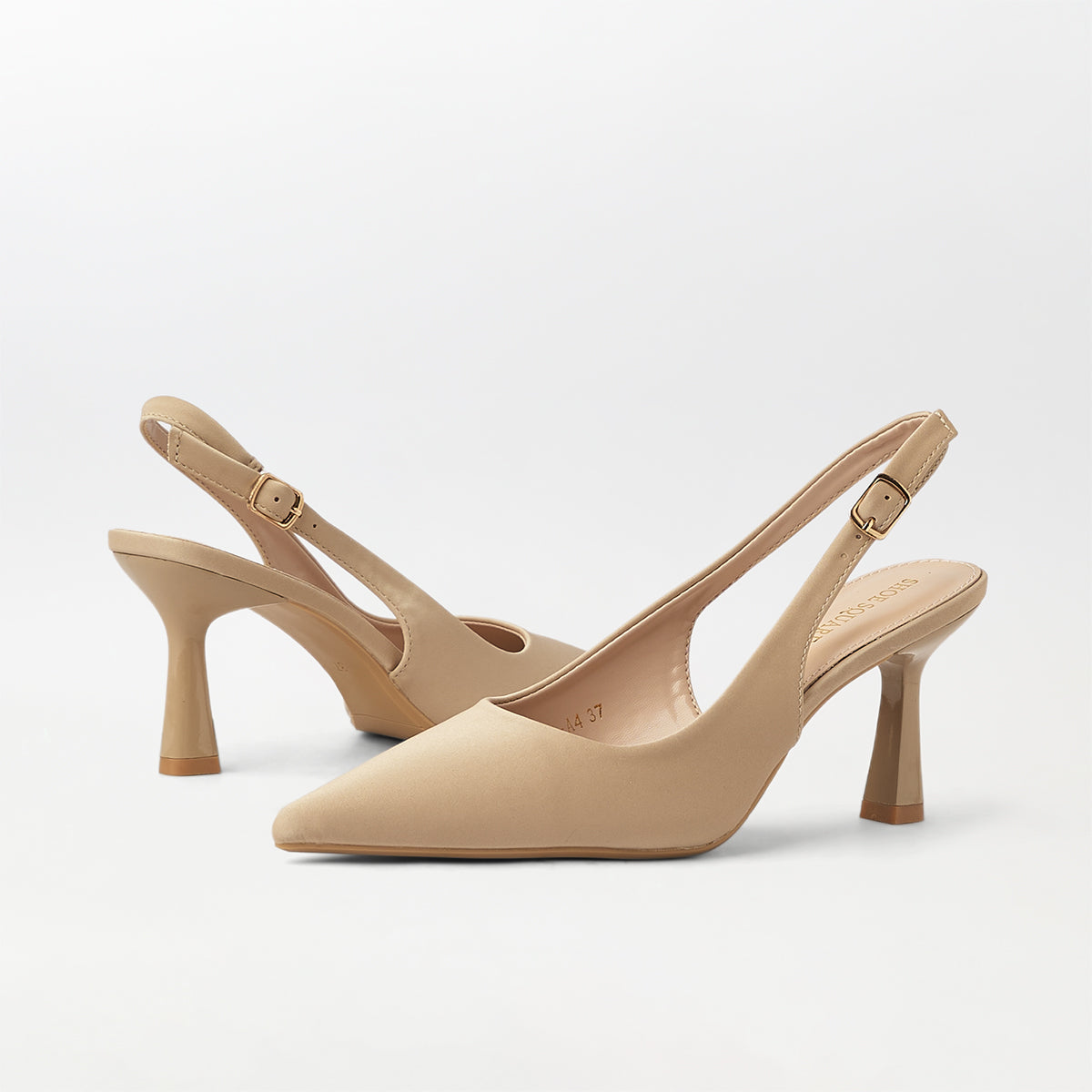 Elevate your footwear collection with these Slingback Kitten Heels in beige. Designed for refined comfort, their low heel offers subtle height without compromising stability. The slingback strap ensures a secure fit, making them ideal for both professional settings and elegant casual wear. The neutral beige shade complements a wide range of outfits, providing versatile sophistication. Perfectly balanced between style and practicality, these heels are a smart choice for those who demand both elegance and ease.