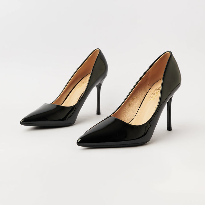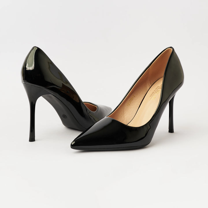 Elevate your style with these Glossy High Heels Court Shoes in classic black. Their sleek, polished finish adds a sophisticated touch to any outfit, while the expertly designed high heel offers both elegance and confident posture. Ideal for formal occasions, these court shoes deliver a timeless look combined with reliable comfort for extended wear. Perfectly crafted to enhance your silhouette, they are a must-have for a polished, professional wardrobe.