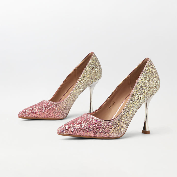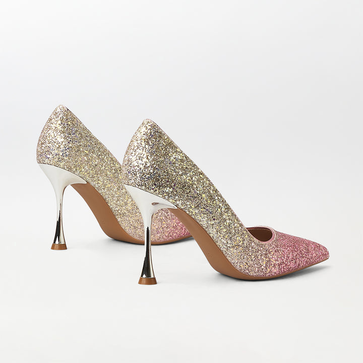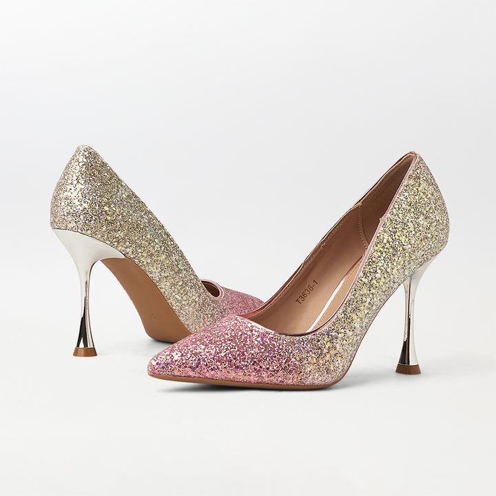 Two Tone Glitter Stiletto High Heels Pink - (CH266)