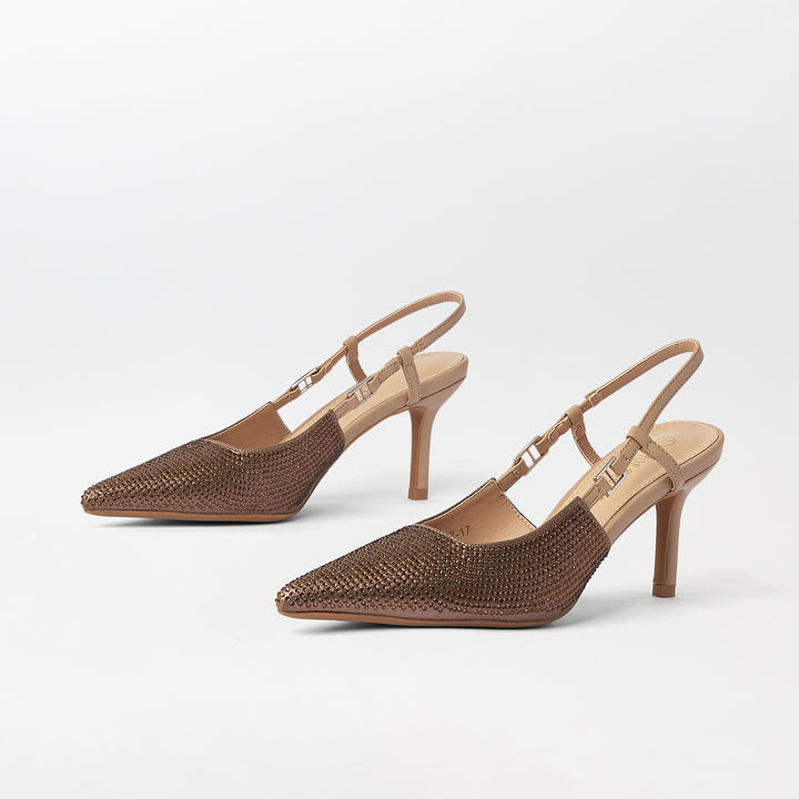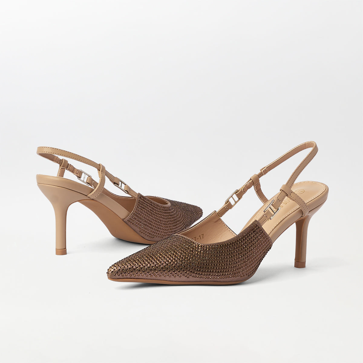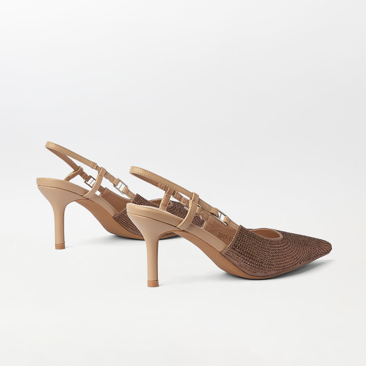 Embellished Slingback Kitten Heels Khaki - (CH276)