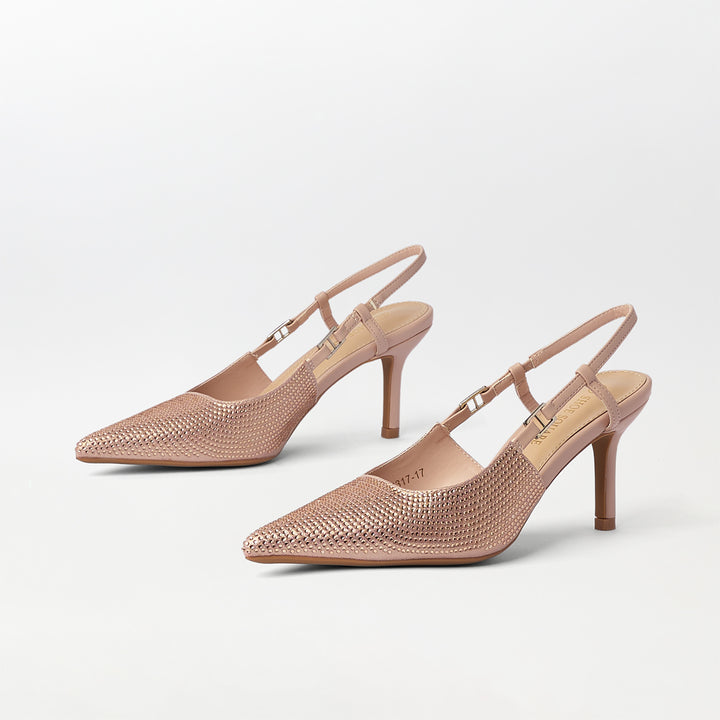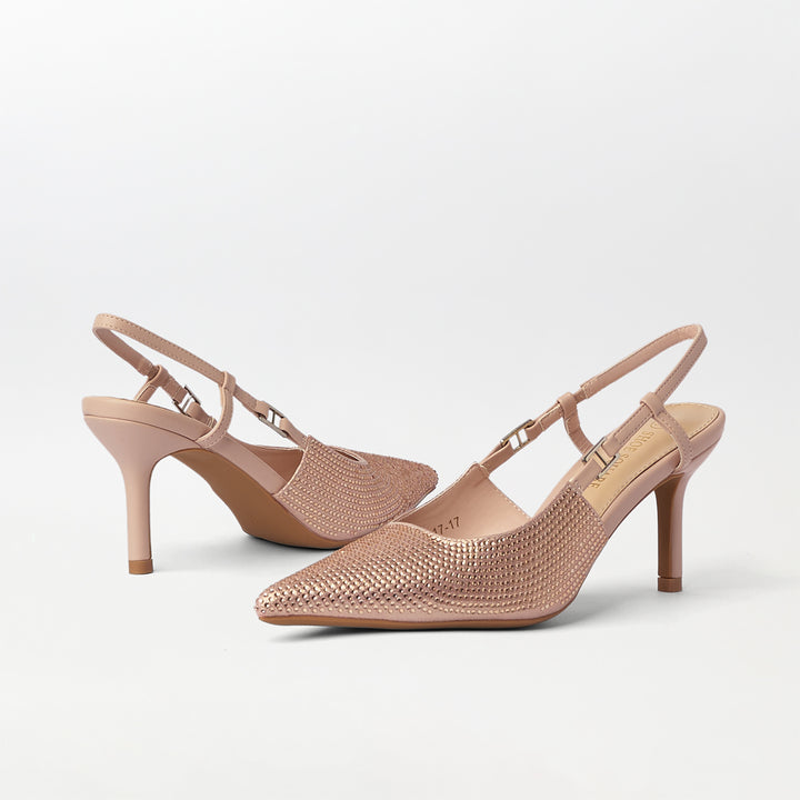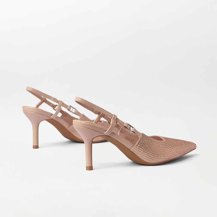 Elevate your style with these Embellished Slingback Kitten Heels in a soft pink hue. Featuring a delicate slingback design and low kitten heel, they combine elegance with comfort for all-day wear. The subtle embellishments add a refined touch, making them perfect for both formal occasions and chic everyday looks. Crafted to enhance your silhouette while providing sturdy support, these heels are a versatile addition to any wardrobe.