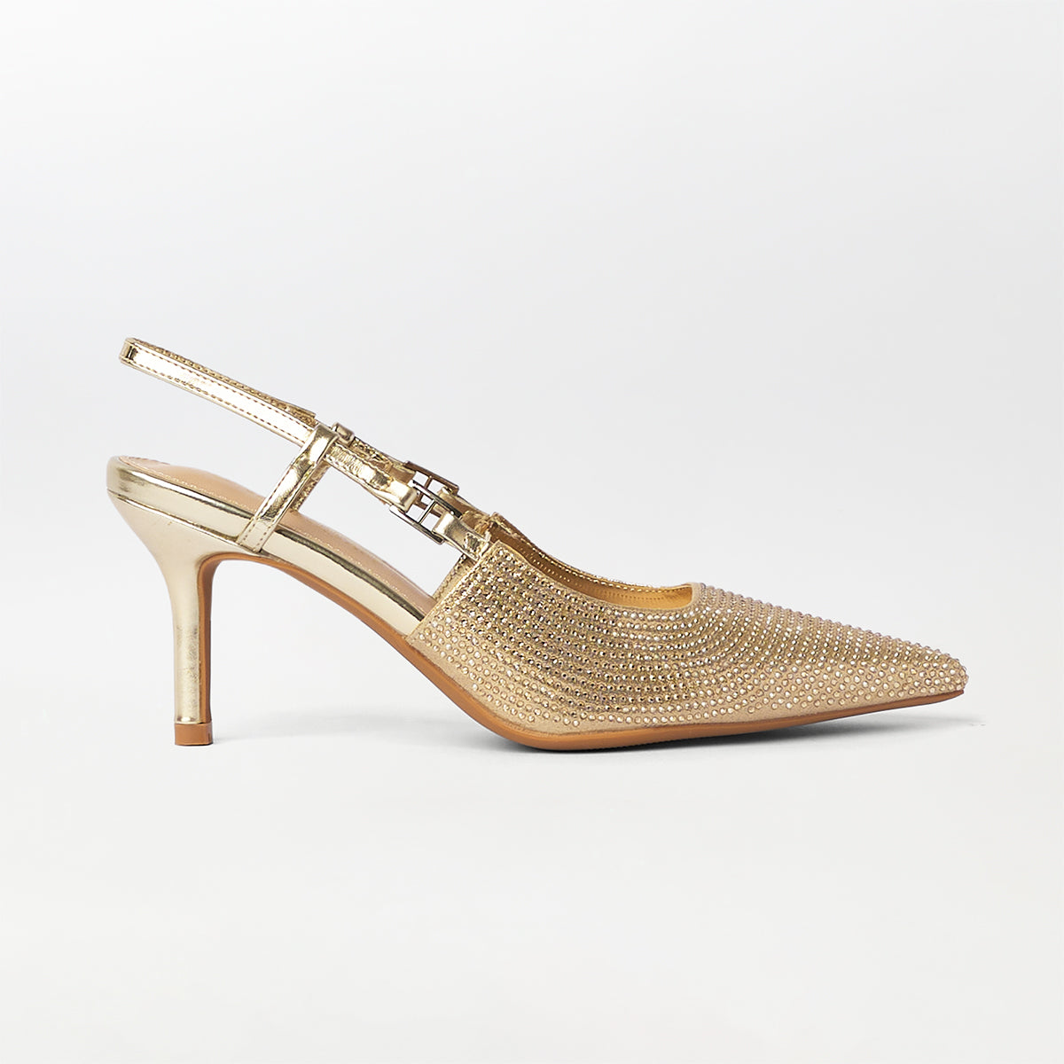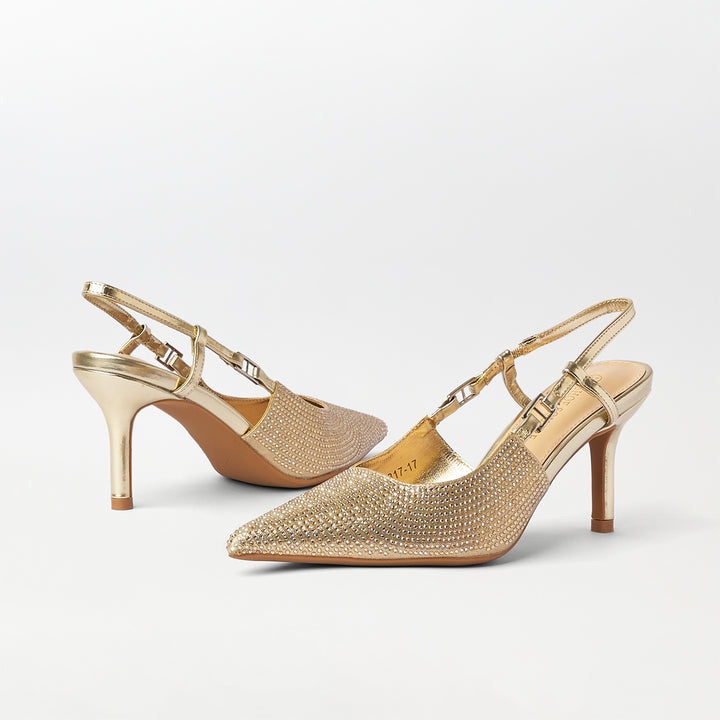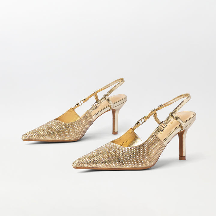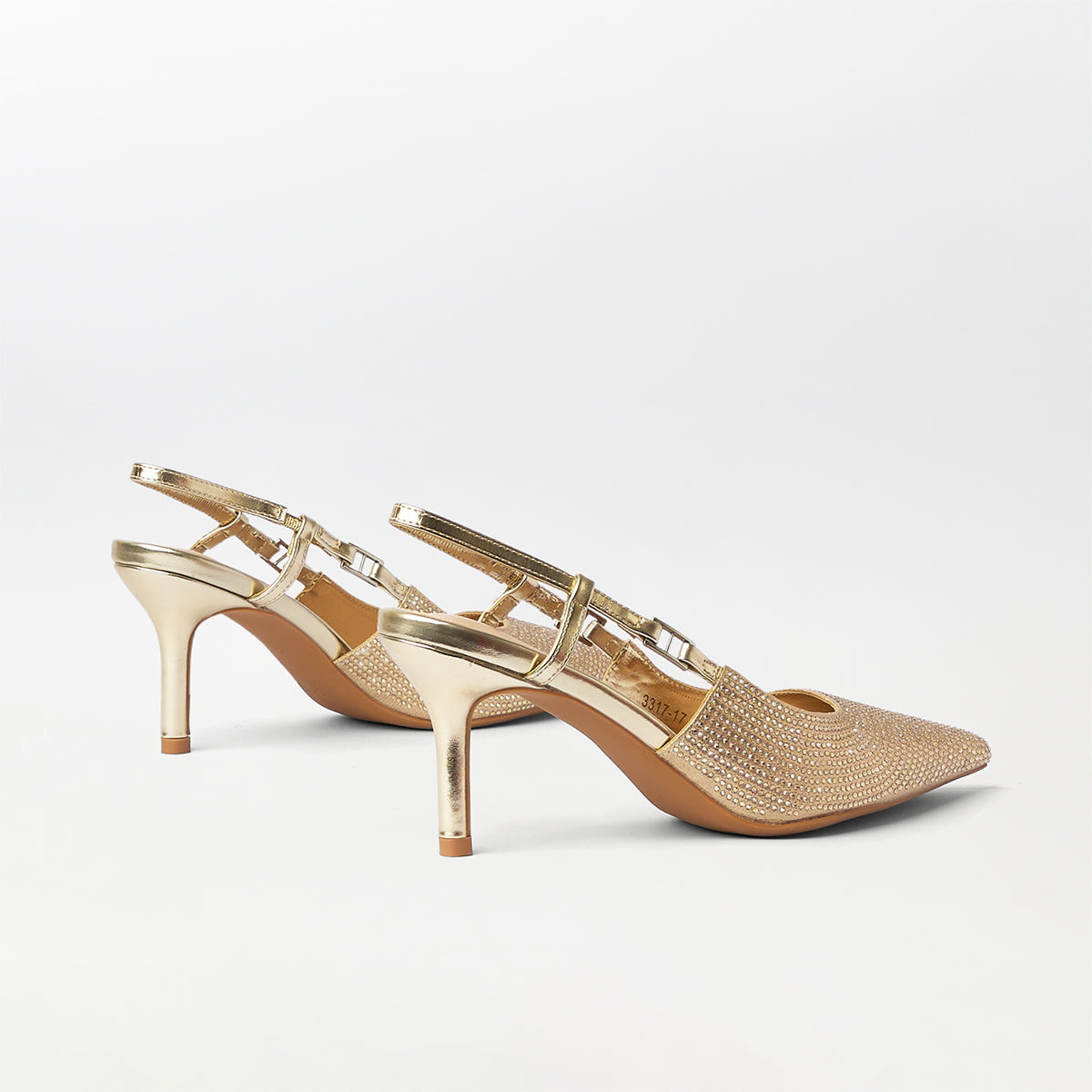 Embellished Slingback Kitten Heels Gold - (CH278)