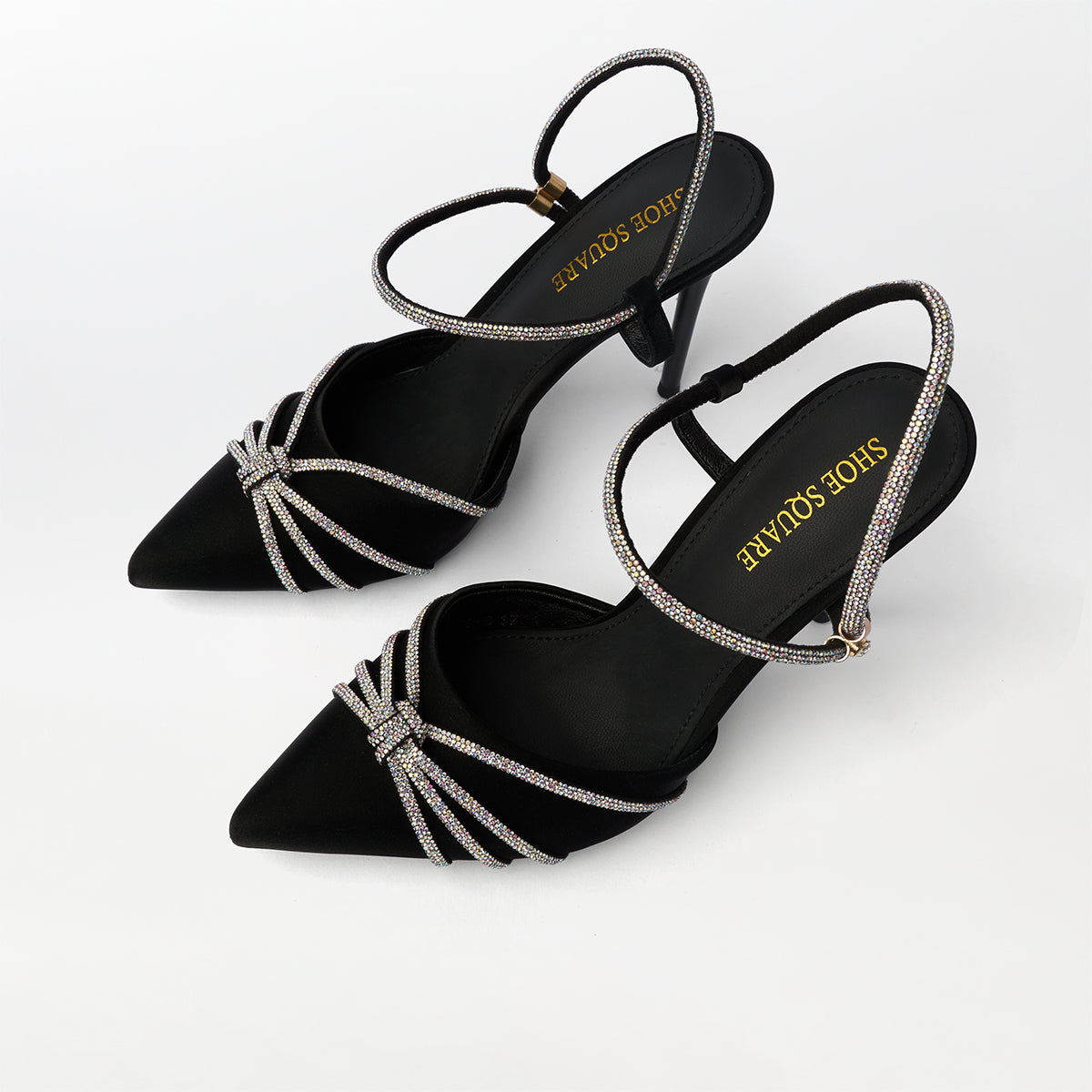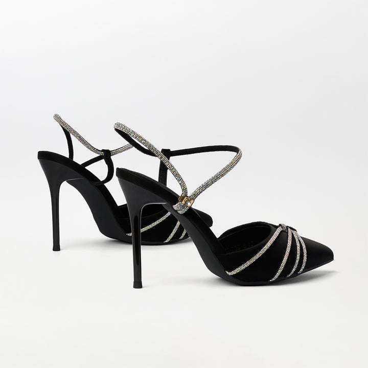 Elevate your evening ensemble with these sophisticated embellished high heel sandals. Crafted in sleek black, they feature intricate detailing that catches the light beautifully, making them ideal for formal occasions and upscale events. The elevated heel provides a flattering silhouette while the embellishments add a touch of glamour without overwhelming the design. Perfect for those seeking refined elegance with understated luxury, these sandals transition seamlessly from special occasions to elevated everyday wear.