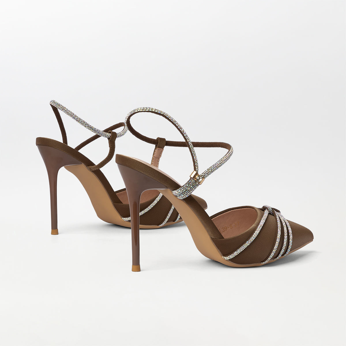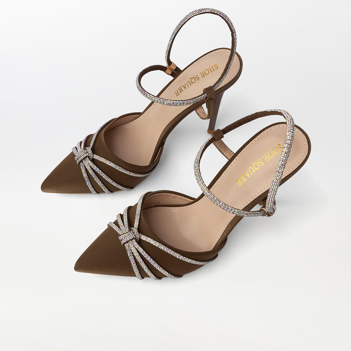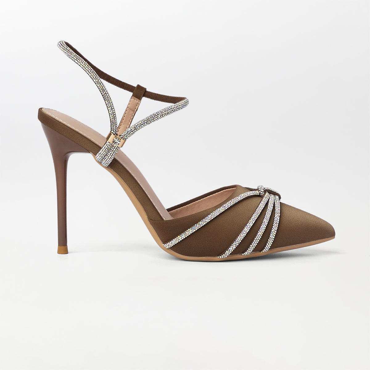 Elevate your footwear collection with these sophisticated embellished high heel khaki sandals. Crafted with meticulous attention to detail, the ornate embellishments add a touch of elegance to the neutral khaki tone, making them versatile enough for both formal occasions and elevated casual wear. The high heel design provides a flattering silhouette while the structured sandal construction ensures comfort throughout the day. Perfect for pairing with dresses, skirts, or tailored trousers, these sandals deliver refined style with every step.