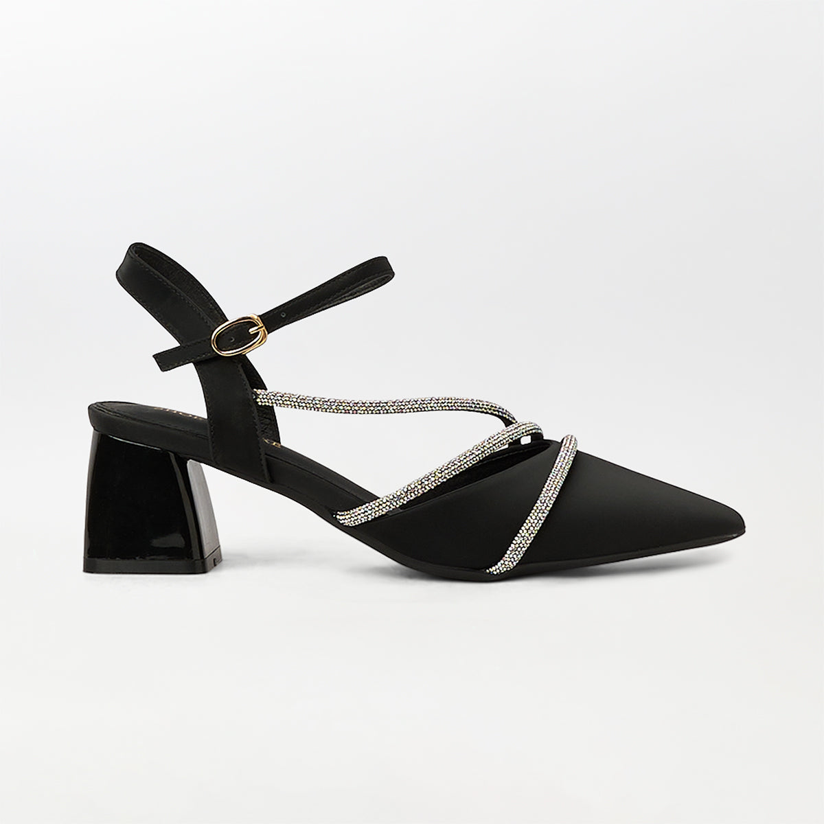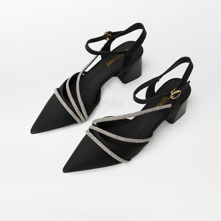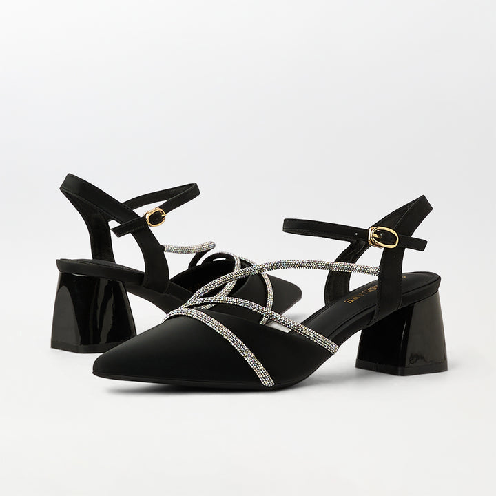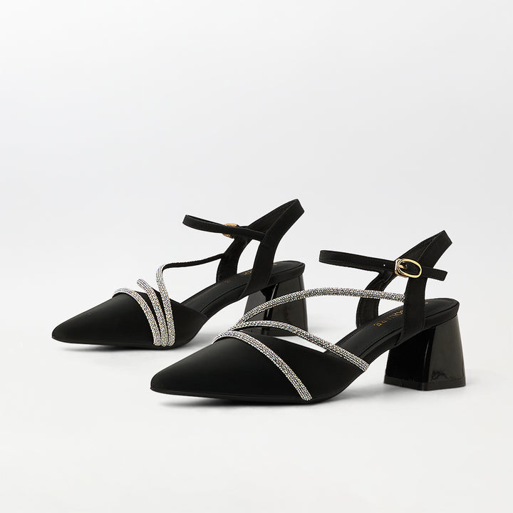 Pointed Toe Block Heel Sandals Black - (CH286)