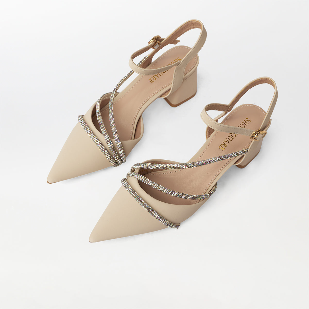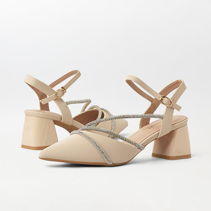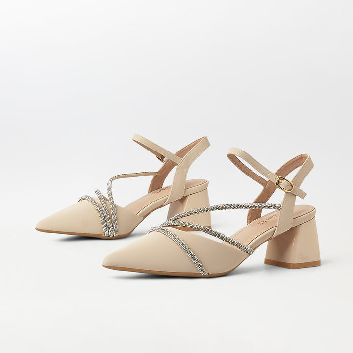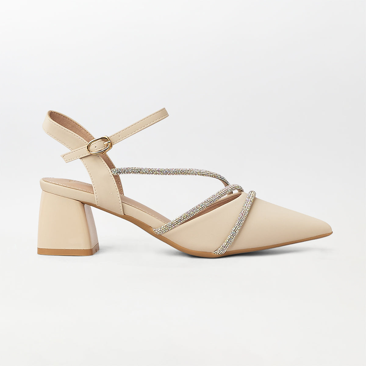 Pointed Toe Block Heel Sandals Beige - (CH287)