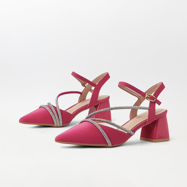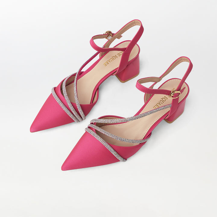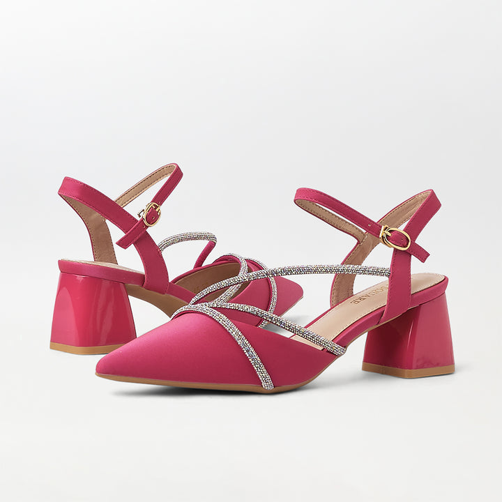 Pointed Toe Block Heel Sandals Fuchsia - (CH288)
