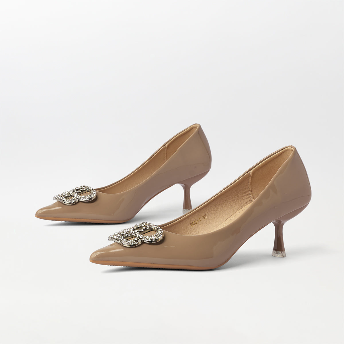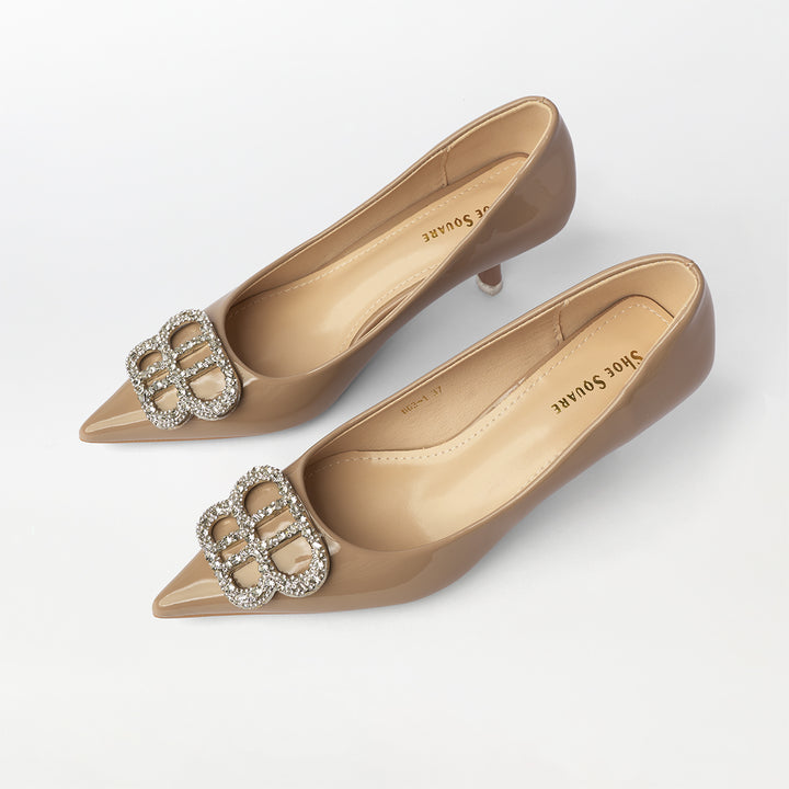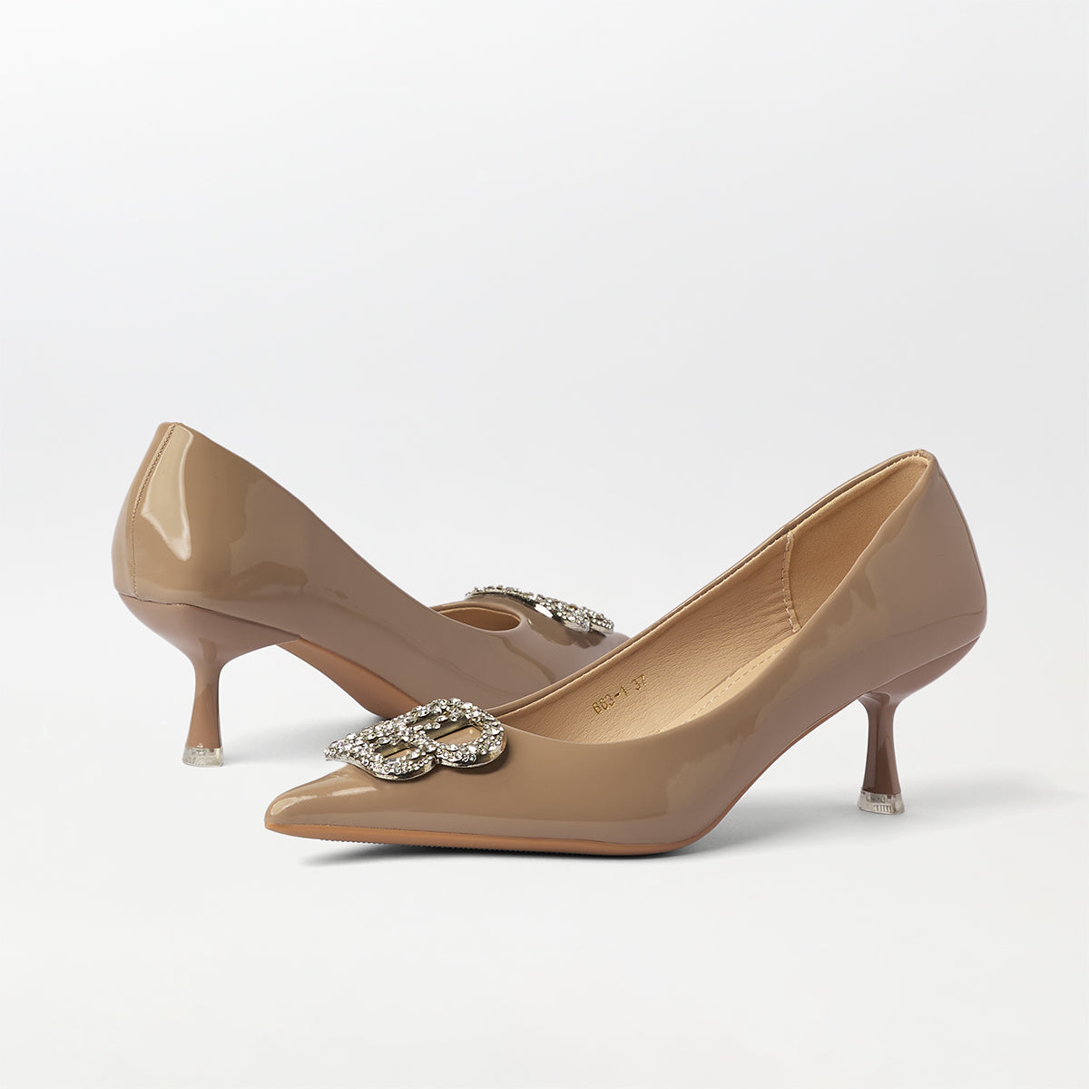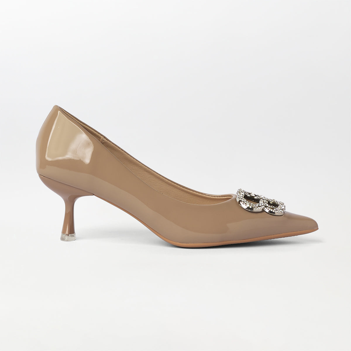 Broach kitten heel Court Shoes Khaki - (CH291)