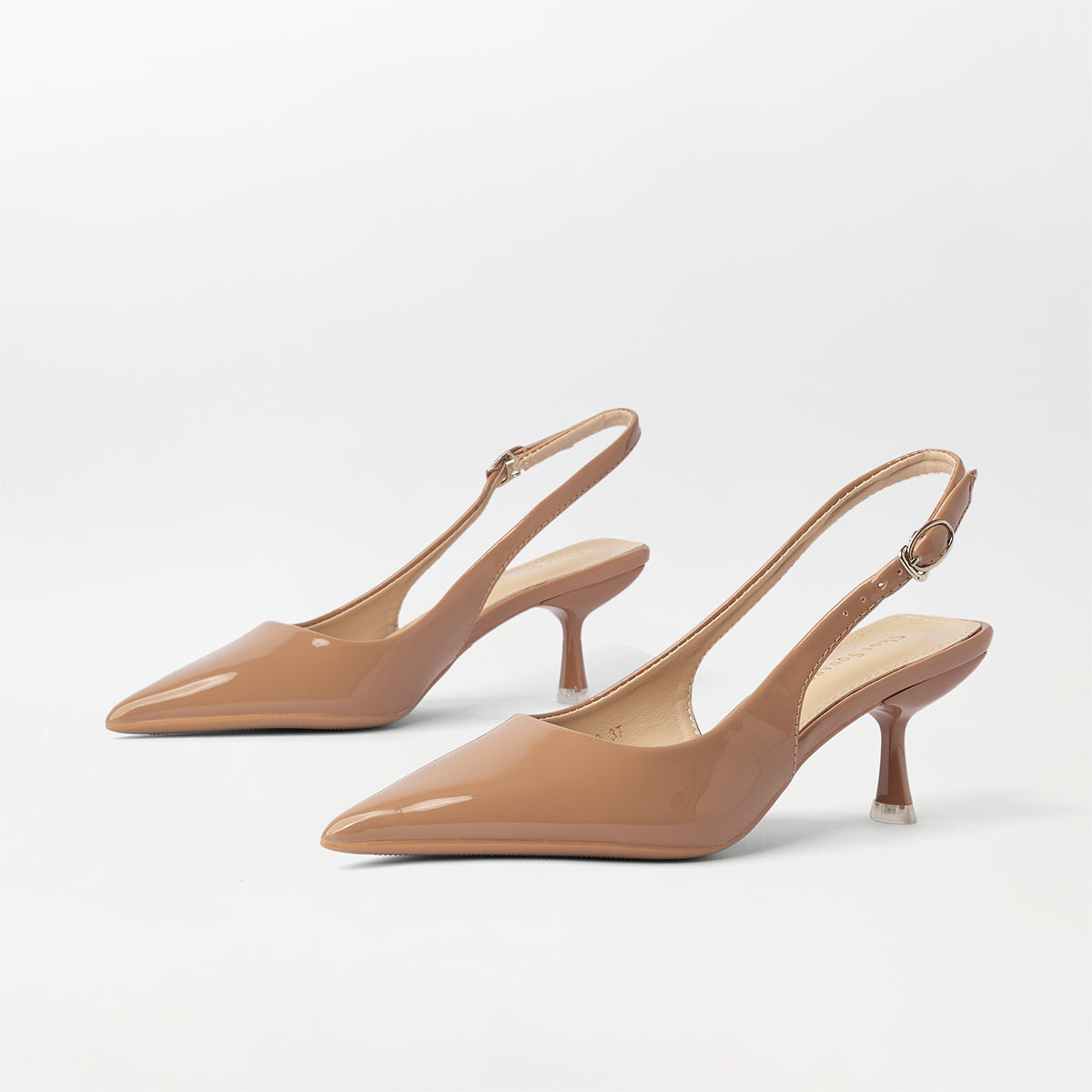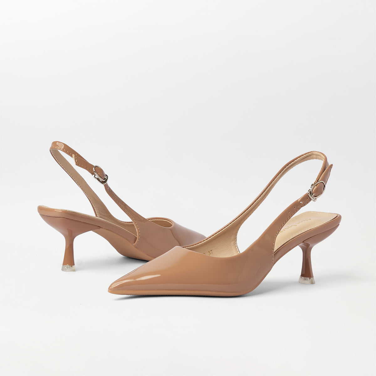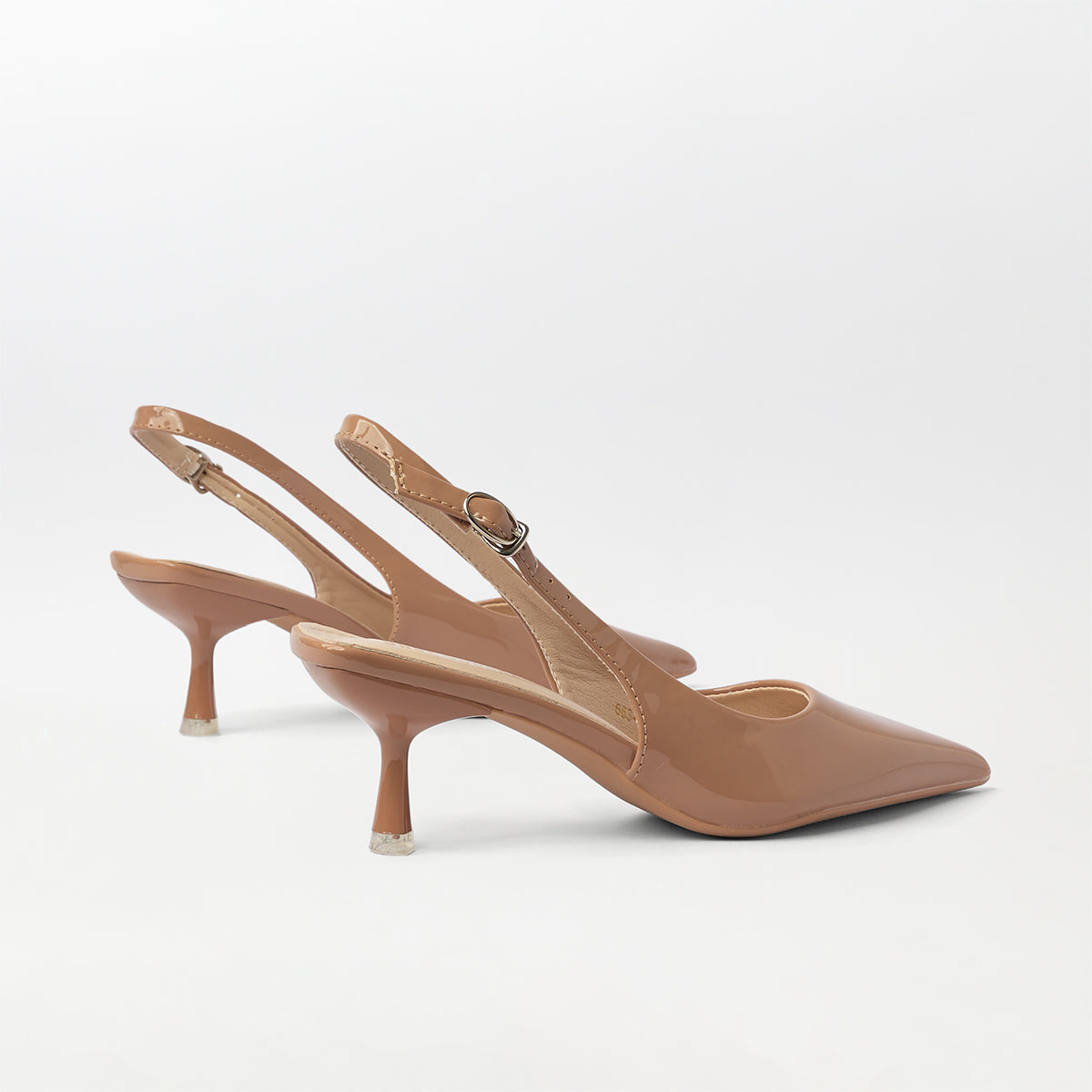 Elevate your footwear collection with these Slingback Kitten Heels in Dark Apricot. Designed for comfort and style, their low heel height offers a delicate lift without compromising on wearability. The slingback strap ensures a secure fit while adding an elegant touch, making them perfect for both professional settings and casual occasions. The rich dark apricot shade provides a versatile, sophisticated look that pairs effortlessly with various outfits. Crafted to blend fashion with function, these heels are an expert choice for refined, everyday elegance.