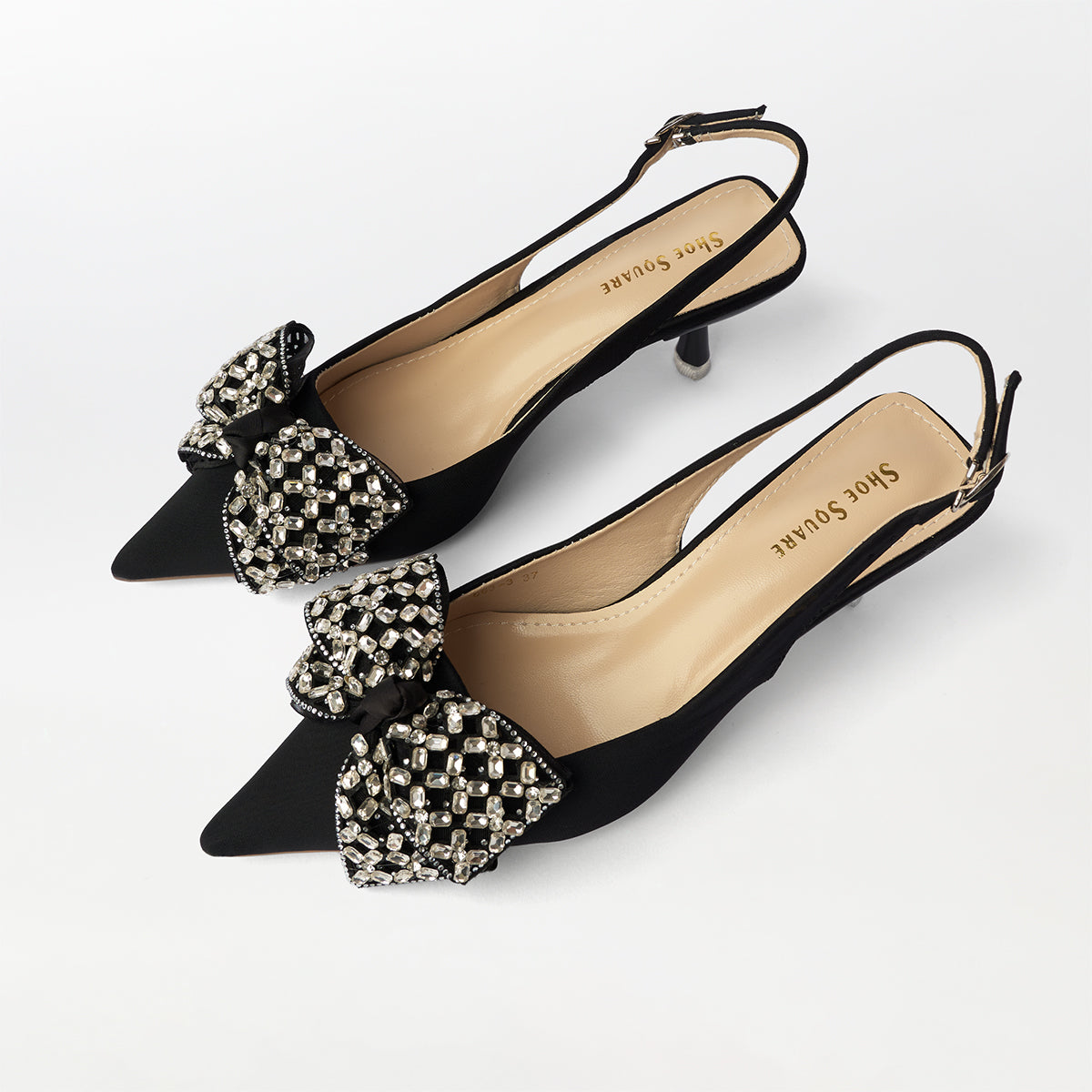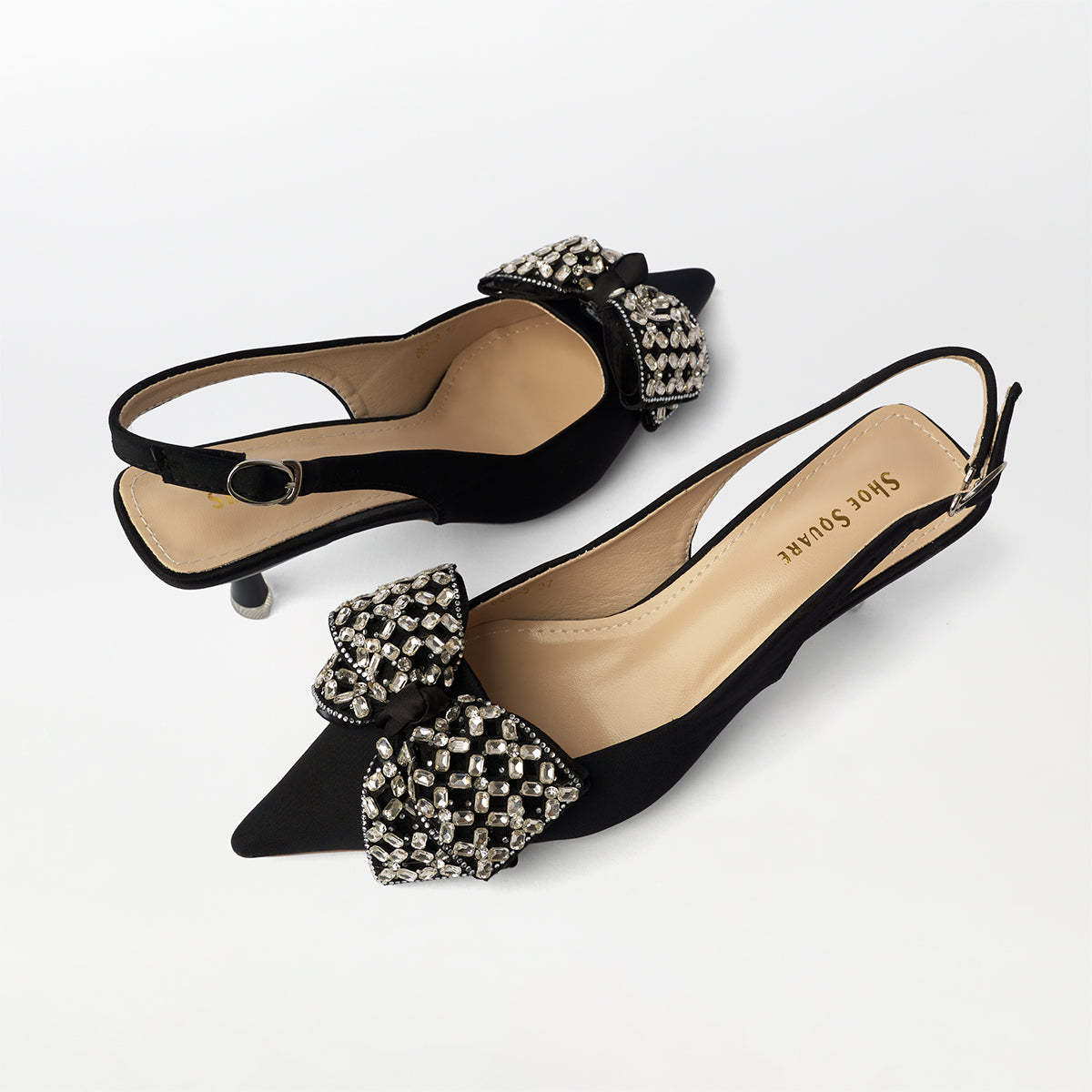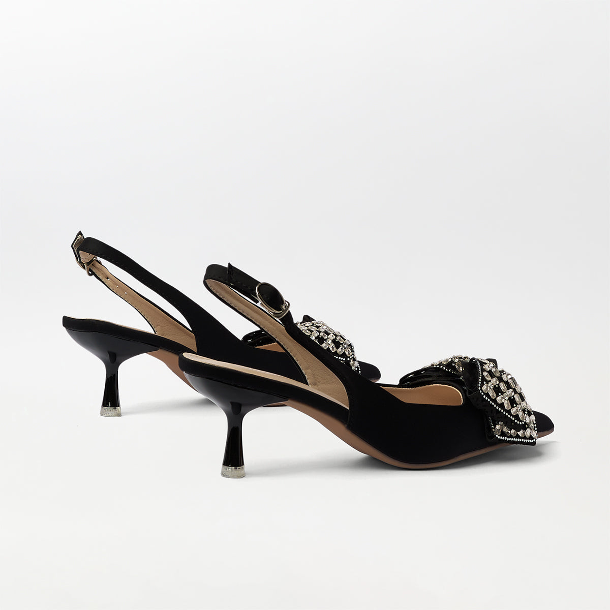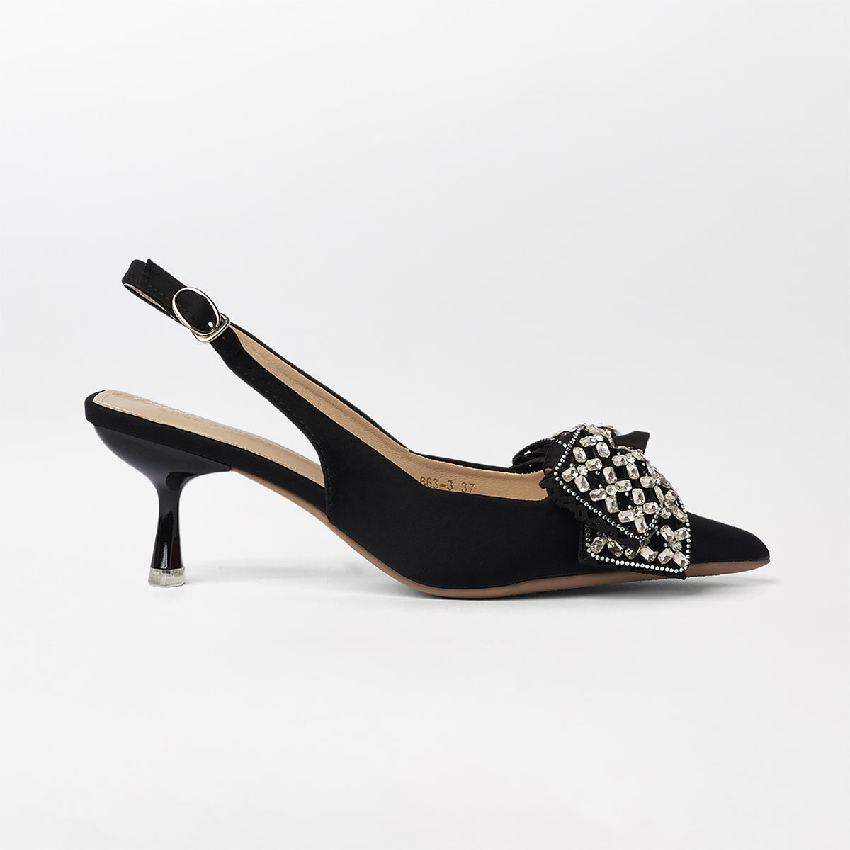 Bowtie Slingback Kitten Heels Black - (CH297)