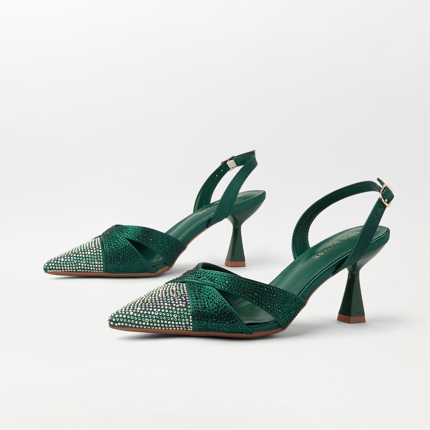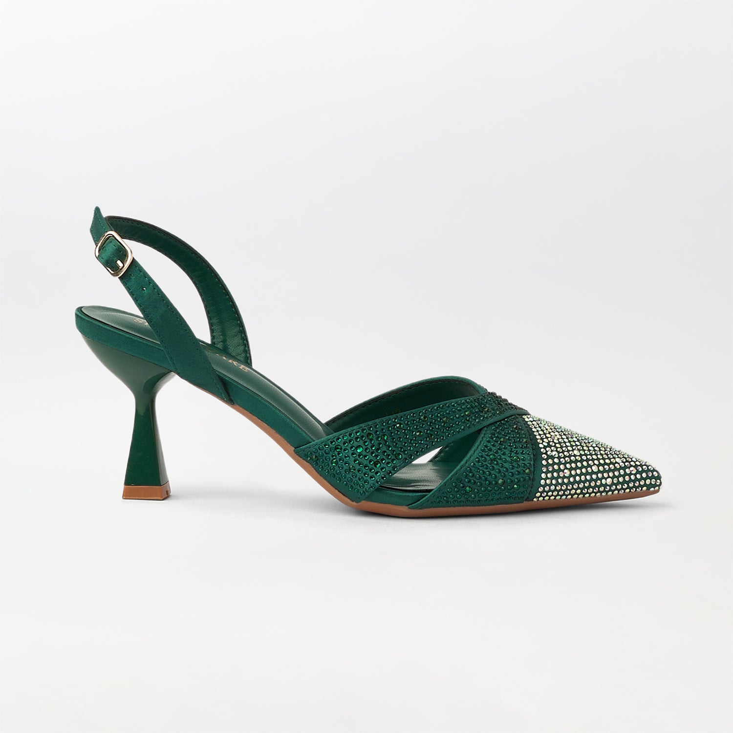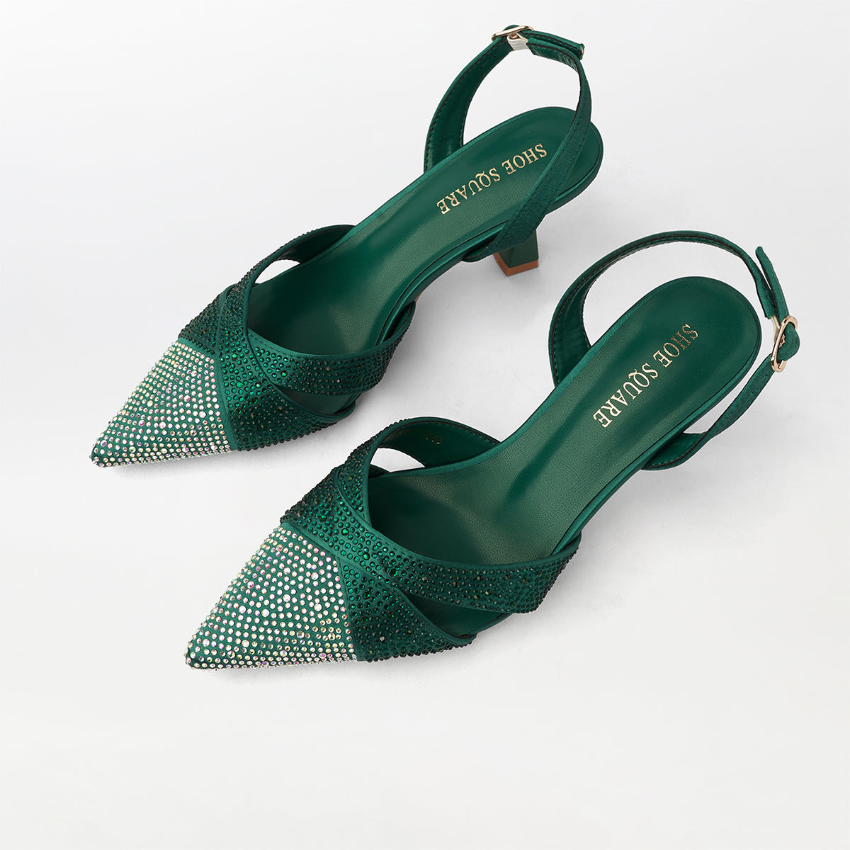 Discover timeless elegance with these pointed-toe kitten heel sandals in a sophisticated green shade. The modest heel height delivers comfort for all-day wear while maintaining a refined aesthetic. Sharp pointed detailing creates a lengthening effect on the foot, making these sandals a versatile choice for both professional and casual occasions. The kitten heel design offers stability without compromising on style, perfect for those seeking understated luxury. An essential addition to any discerning wardrobe.