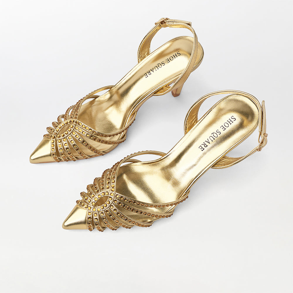 Step into refined elegance with these gold embellished heel sandals, designed for the discerning wearer. Featuring intricate embellishments that catch the light beautifully, these sandals deliver sophisticated style for formal events and special occasions. The carefully engineered heel offers optimal support without compromising on comfort, while the premium materials ensure lasting quality. The versatile gold tone pairs effortlessly with evening wear, making these sandals a valuable addition to any curated footwear collection. A testament to thoughtful design and superior craftsmanship.
