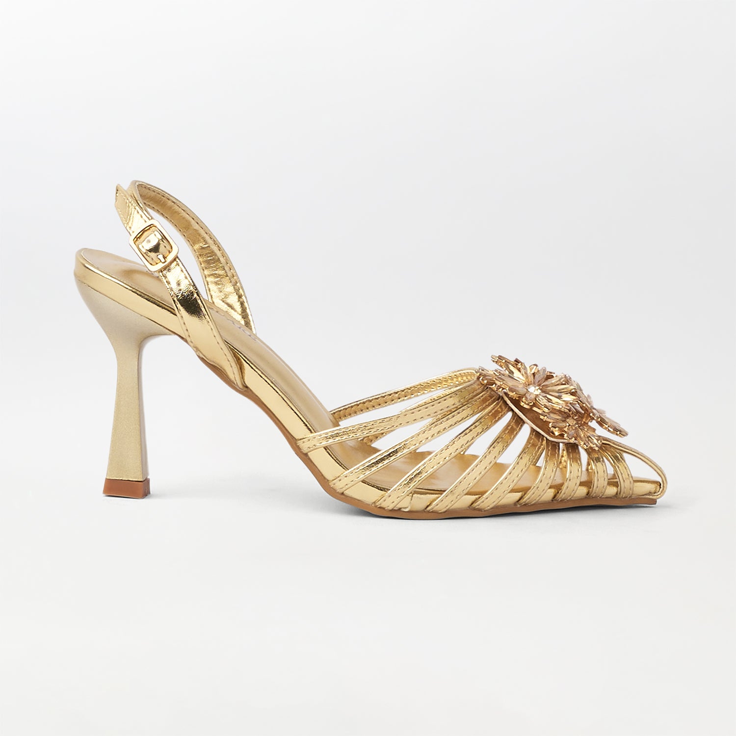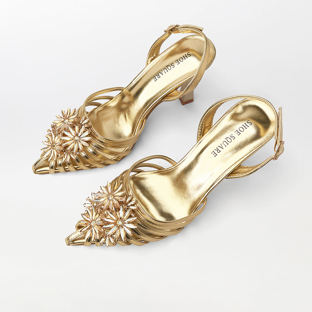These golden embellished heel sandals represent the pinnacle of formal footwear design, crafted for the woman who refuses to compromise on style or wearability. The shimmering golden tone is complemented by exquisite embellishments that radiate understated luxury, making them an exceptional choice for milestone celebrations, upscale events, and formal gatherings. A thoughtfully engineered heel ensures stability and poise throughout the evening, while the meticulous ornamentation guarantees you'll command attention. Whether styled with classic ethnic wear or modern formal ensembles, these sandals epitomize enduring sophistication and refined taste.