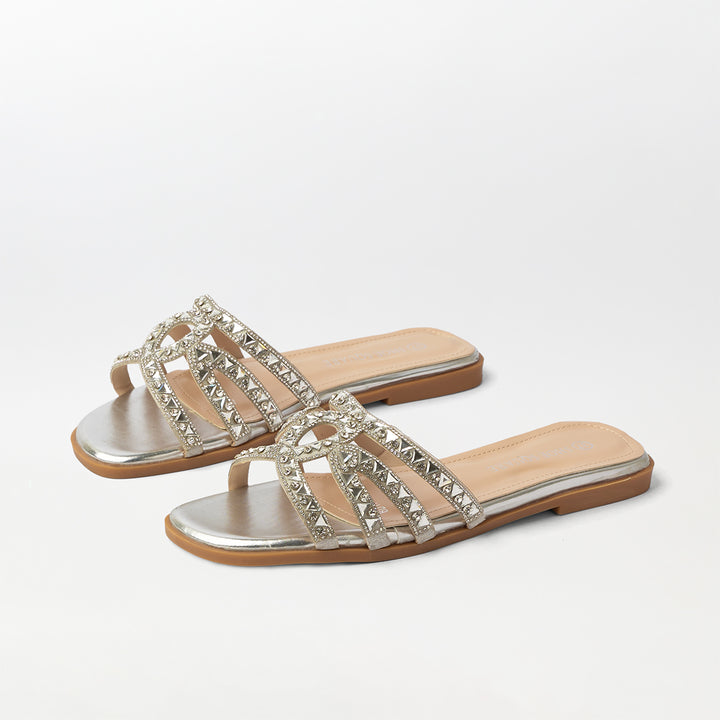 Stone Embellished Flat Slippers combine understated elegance with everyday comfort. Crafted with a silver finish, these slippers feature carefully placed stone embellishments that add a touch of sophistication to your indoor footwear collection. The flat design ensures effortless wear, making them ideal for relaxed moments at home or casual gatherings. The durable construction and refined aesthetic make these slippers a versatile choice for those who appreciate quality craftsmanship and subtle style details.