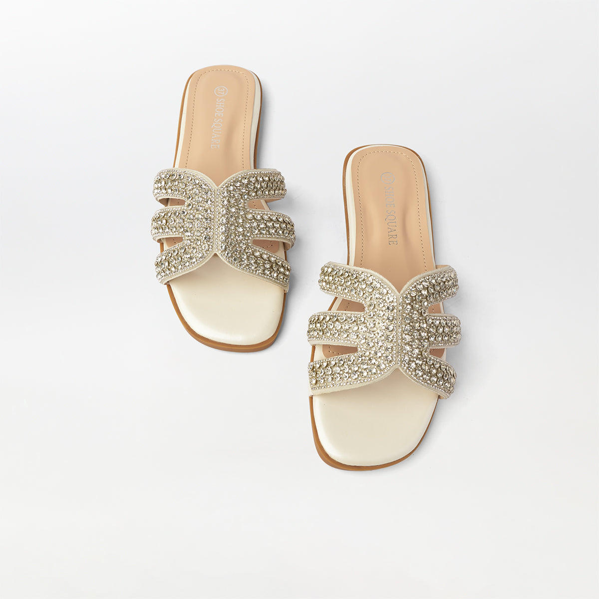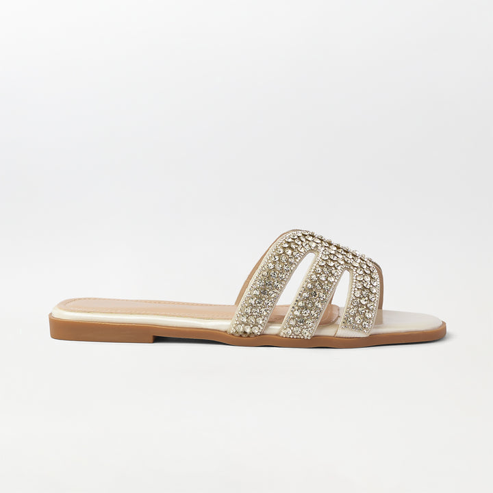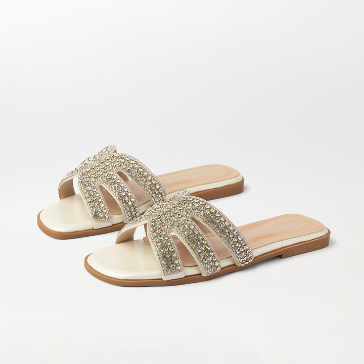 Stone Embellished Flat Slippers - (FS82)