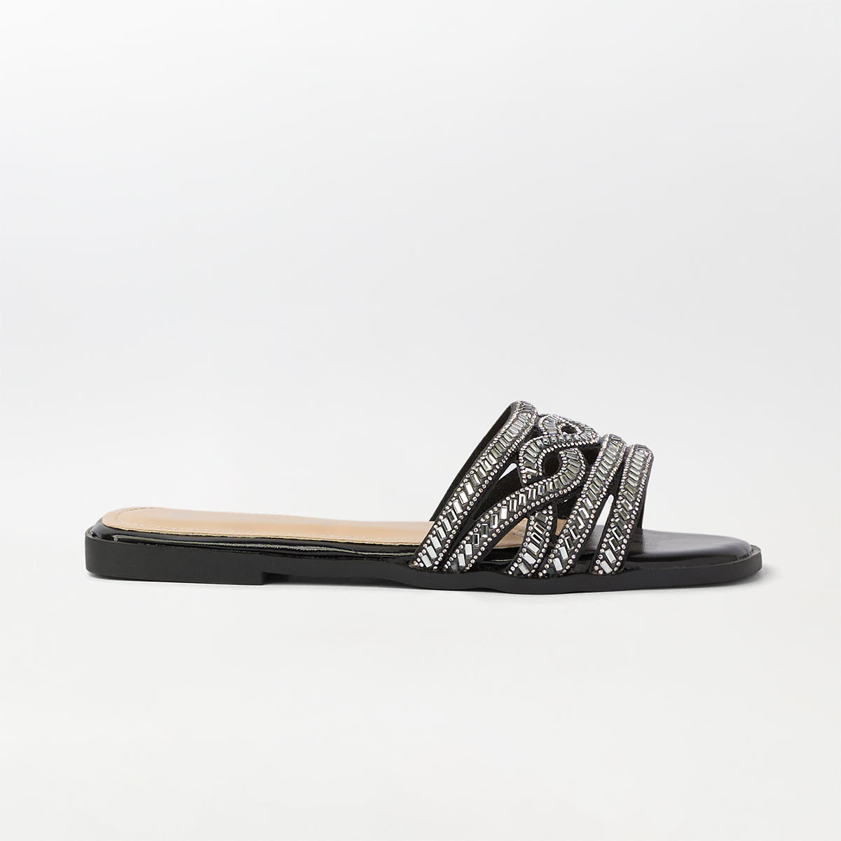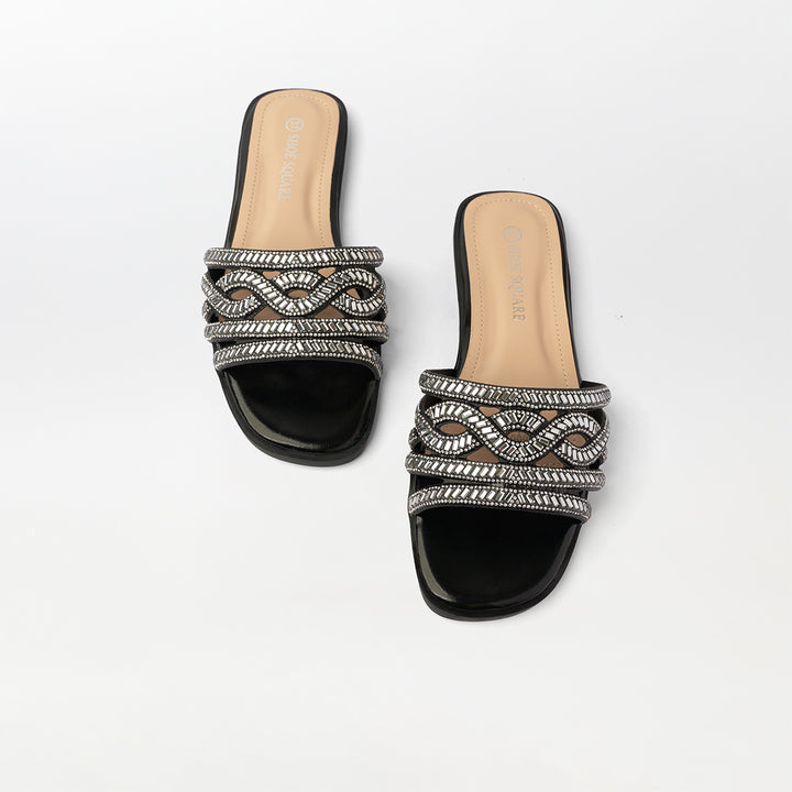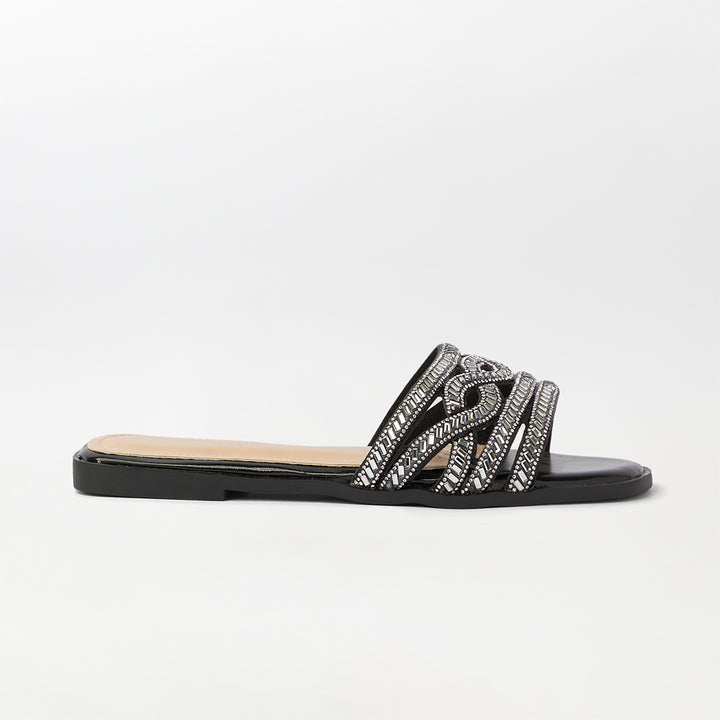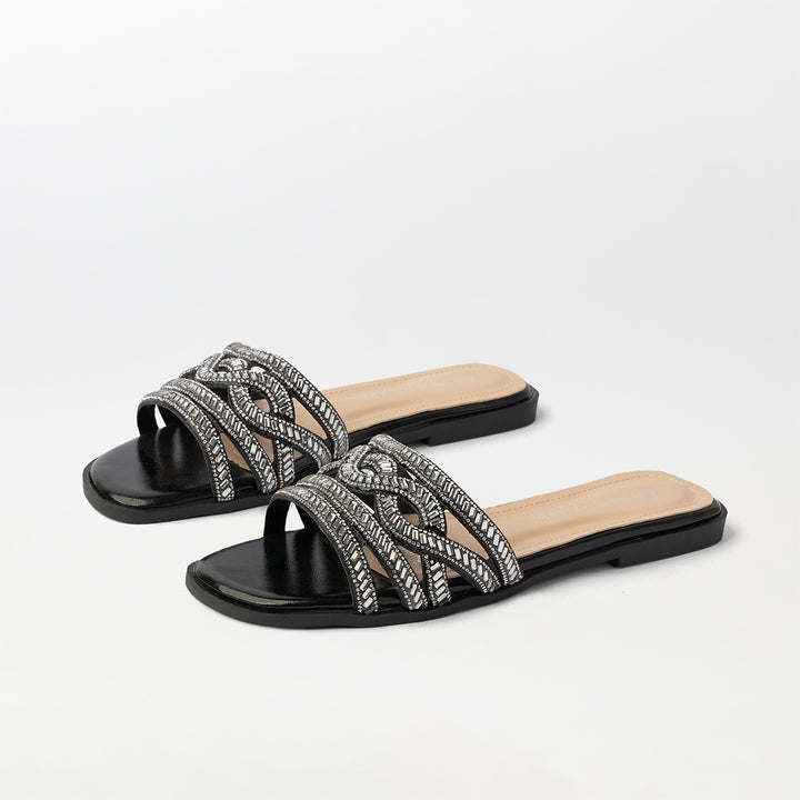 Stones Embellished Flat Slippers Black - (FS91)