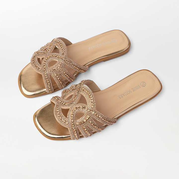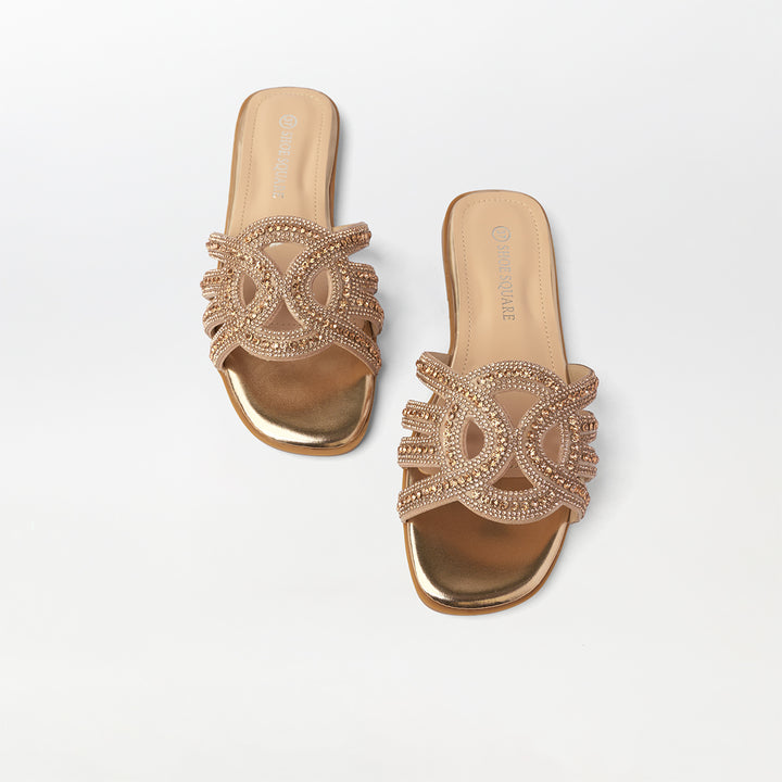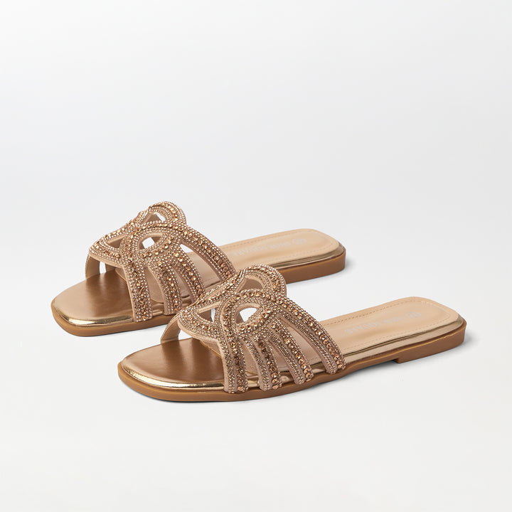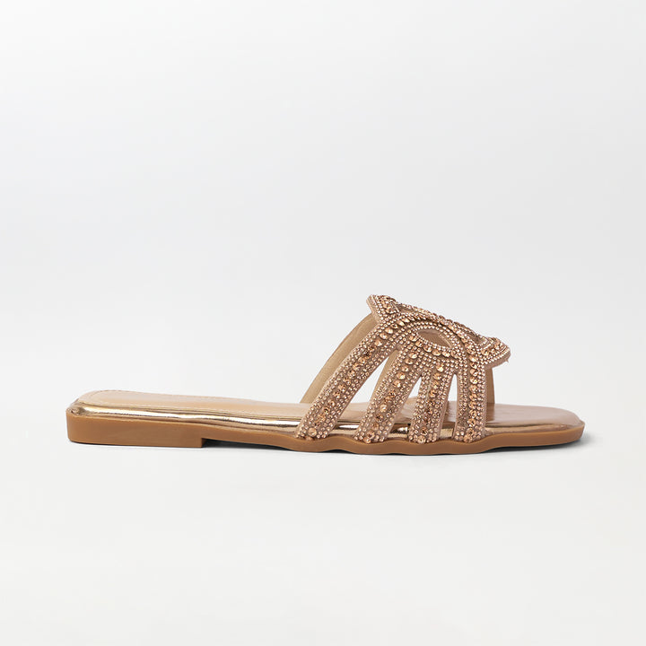 Embellished Cut Work Flat Slippers Champagne - (FS94)